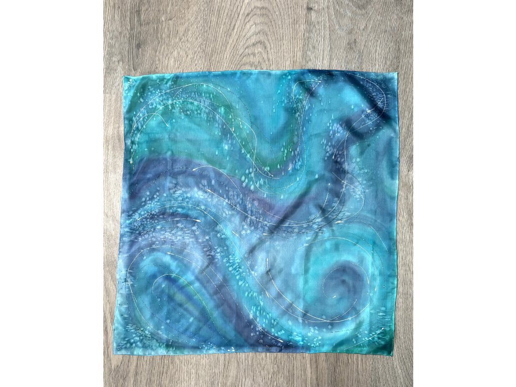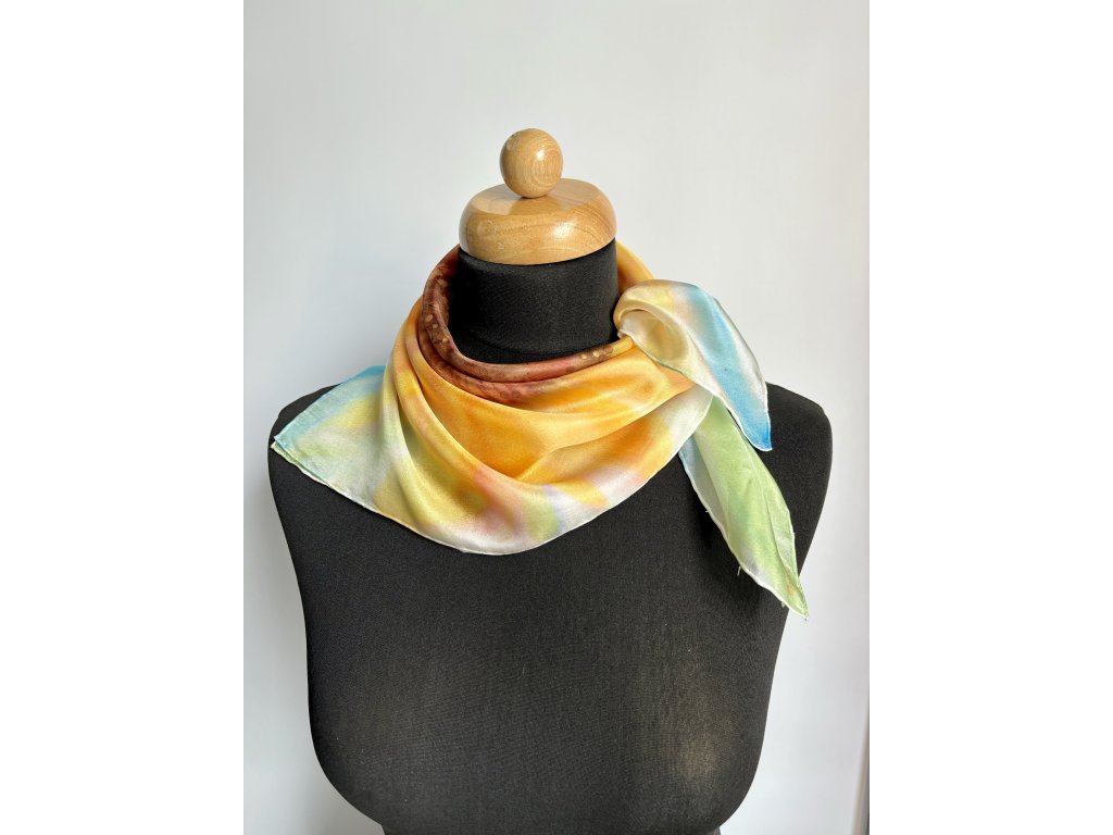 Originální, ručně malovaný šátek ze 100% přírodního hedvábí